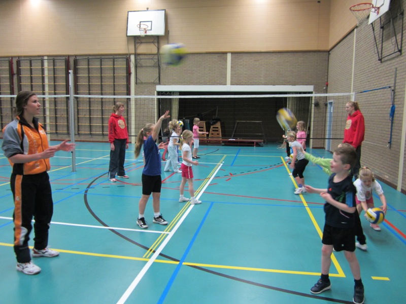 Maar liefst 16 kinderen in de leeftijd van 6-9 jaar hebben deze ochtend onder begeleiding van diverse mini- en jeugdtrainers op een speelse en dynamische manier kennis gemaakt met het Cool Moves Volleybal. Het CMV is onder andere door de Nederlandse Volleybal Bond ontwikkeld om kinderen in 6 stappen en op 6 verschillende niveaus de basistechnieken van het volleybalspel bij te brengen. Tijdens de Instuif konden de kinderen naar harte lust oefenen met het vangen, gooien en serveren. Aan het einde van de Instuif was er tijd voor een echte volleybalwedstrijd tegen elkaar op een miniveldje. Alle kinderen die hebben meegedaan aan de Instuif kregen na afloop een kleurplaat van het CMV en een ballon mee naar huis om thuis te kunnen gaan oefenen.