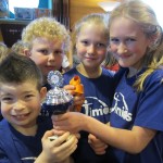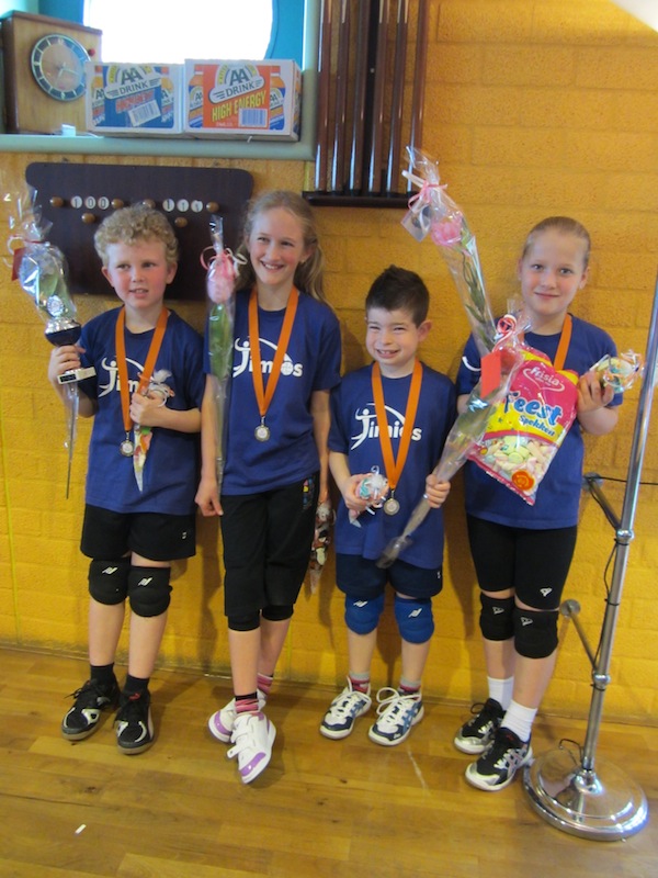 Kristel van Pinxteren, Fabian Schouten, Meike van Tol en Luuk Vreeburg zijn samen met nog 11 andere mini’s pas dit seizoen begonnen met volleyballen. Volgens het Cool Moves Volleyprincipe, waarbij er op niveau 2 vooral wordt gevangen, gegooid en geserveerd, heeft dit team dus erg goed gepresteerd. Tegen teams uit de regio werden er verschillende wedstrijdjes van 4 tegen 4 gespeeld en de Nevobo heeft uiteindelijk alle uitslagen bij elkaar opgeteld. Het Niveau 2-team van Timios kwam hierbij als beste uit de bus en de kinderen hebben daarom een mooie medaille en een prachtige beker ontvangen. Ook de andere mini’s van Timios hebben voor hun inzet een glimmende medaille gekregen. De kampioenen zijn daarnaast nog eens, door de enthousiaste ouders, extra in het zonnetje gezet met wat lekkers, nog een medaille, een mooie bloem en een heerlijk patatje na afloop!