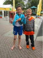 De kinderen zijn voor de zekerheid eerst nog in groepjes verdeeld, maar konden daarna bij binnenkomst vrij over het park bewegen en gaan en staan waar ze wilden. In de botsauto’s, lekker schommelen, trampoline springen, op een fiets met een wel heel vreemd wiel gaan zitten of gewoon lekker scheppen in het zand. Ook de 9 begeleiders die meegingen hadden de dag van hun leven; in een kabelbaantje over het water, met elkaar van de lange glijbaan, gezellig in de monorail over het park heen of je laten varen in de waterfiets! Tussen de middag mochten we ook nog eens met de kinderen genieten van een heerlijk patatje… ik heb die grote begeleiders nog nooit zo stil gezien!