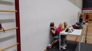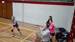 Dan de derde set… Je weet wel, die altijd lastige derde set. Nou nee hoor… geen moeite. We vlogen naar een 5-0 voorsprong, gevolgd door een 13-4 voorsprong. Het moment waarop de dames van DOS het niet eens waren met de stand. Het zou in hun ogen 13-5 moeten zijn. Zelden horen we dames zo hard klagen over de stand. Onze tellers… ja je leest het goed! Onze tellers, bestaande uit Kyan, Vana en Eveline, hadden het punt allang gegeven. Toch, omdat ze heel hard bleven geloven in het punt wat ze niet gemaakt hadden, besloten wij een punt cadeau te doen. Uiteraard was onze flying Dutchwomen Jacq degene die met een killblok duidelijk maakte dat ze maar kort mochten genieten van hun punt. Met een stand van 25-10 (dus eigenlijk 9…) gingen we vrolijk zingend het veld af met alweer de setwinst.