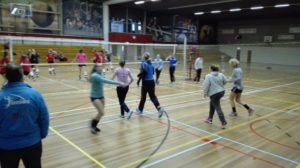 Het zingen hebben we nooit meer opgegeven. Het was gezellig, we zaten in de flow en er werd gewerkt voor alles wat aan onze kant van het net was. De ene pancake na de andere frustreerde de dames uit Schoonhoven steeds verder. We weten allemaal hoe irritant het is om tegen een tegenstander te spelen die ALLES van de grond haalt. Nu waren wij die tegenstander en geloof me… het was heerlijk! Het is niet meer spannend geweest en met 25-17 kon ook het vijfde punt mee terug naar huis.