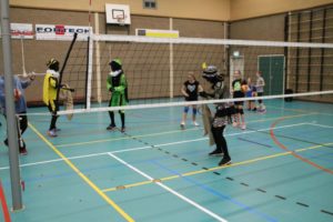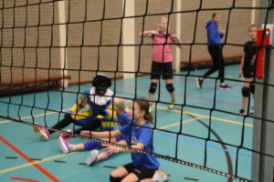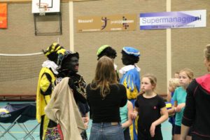 zij wel konden volleyballen. Het Antwoord was kort en duidelijk: NEE! Het gevolg was dat de training werd hervat en dat de Pieten mee moesten doen.